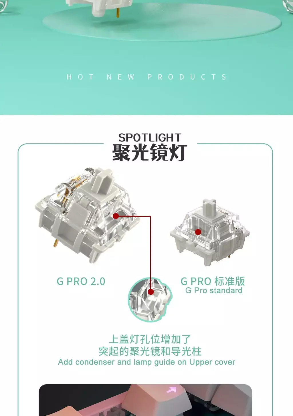 O Gateron Pro 2.0 combina tecnologia avançada e engenharia de alta qualidade para entregar performance superior. Disponível nos estilos linear (suave e silencioso) e tátil (resposta perceptível), este switch permite que você personalize a experiência do seu teclado RGB, oferecendo sensação uniforme e confiável a cada toque.